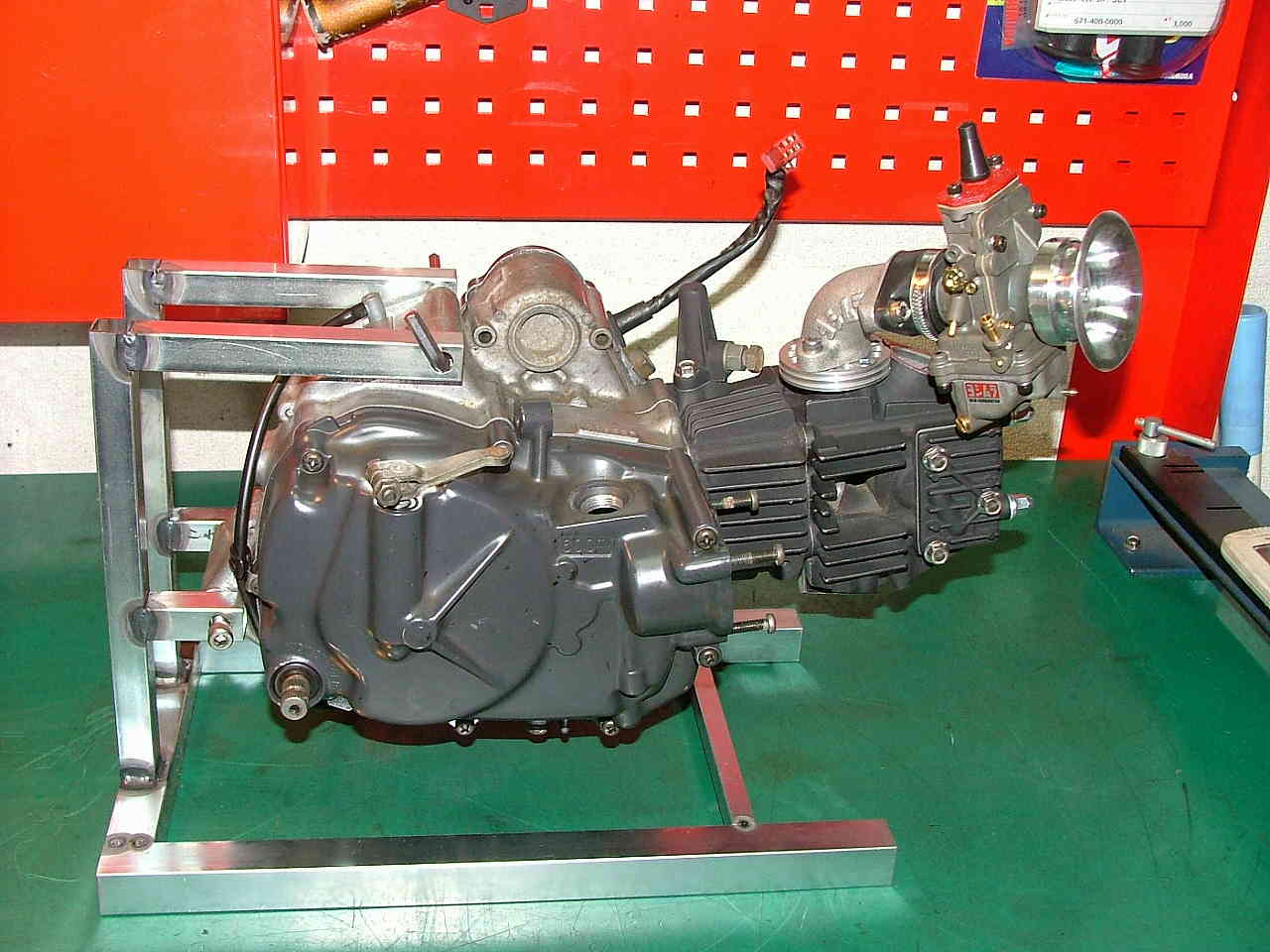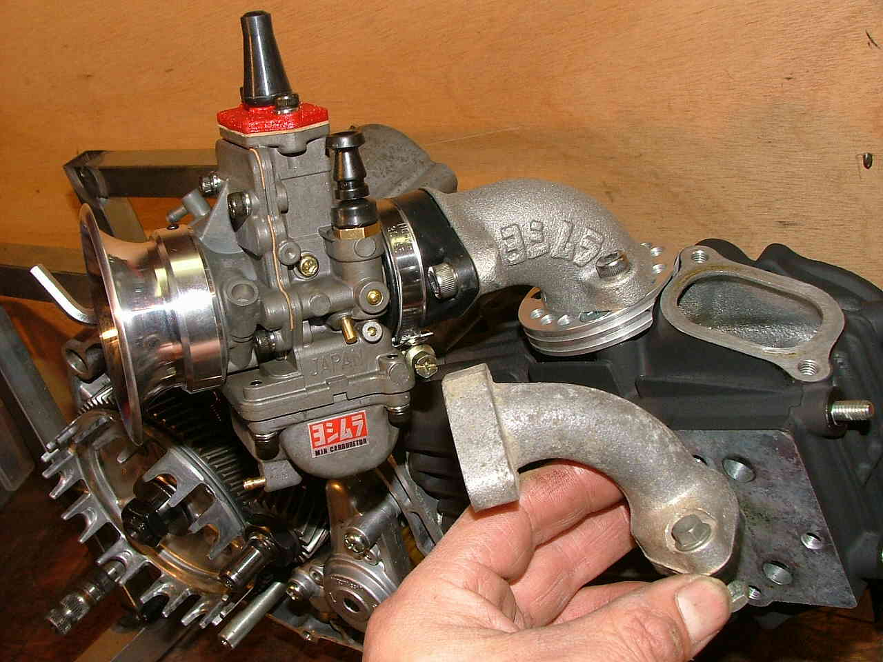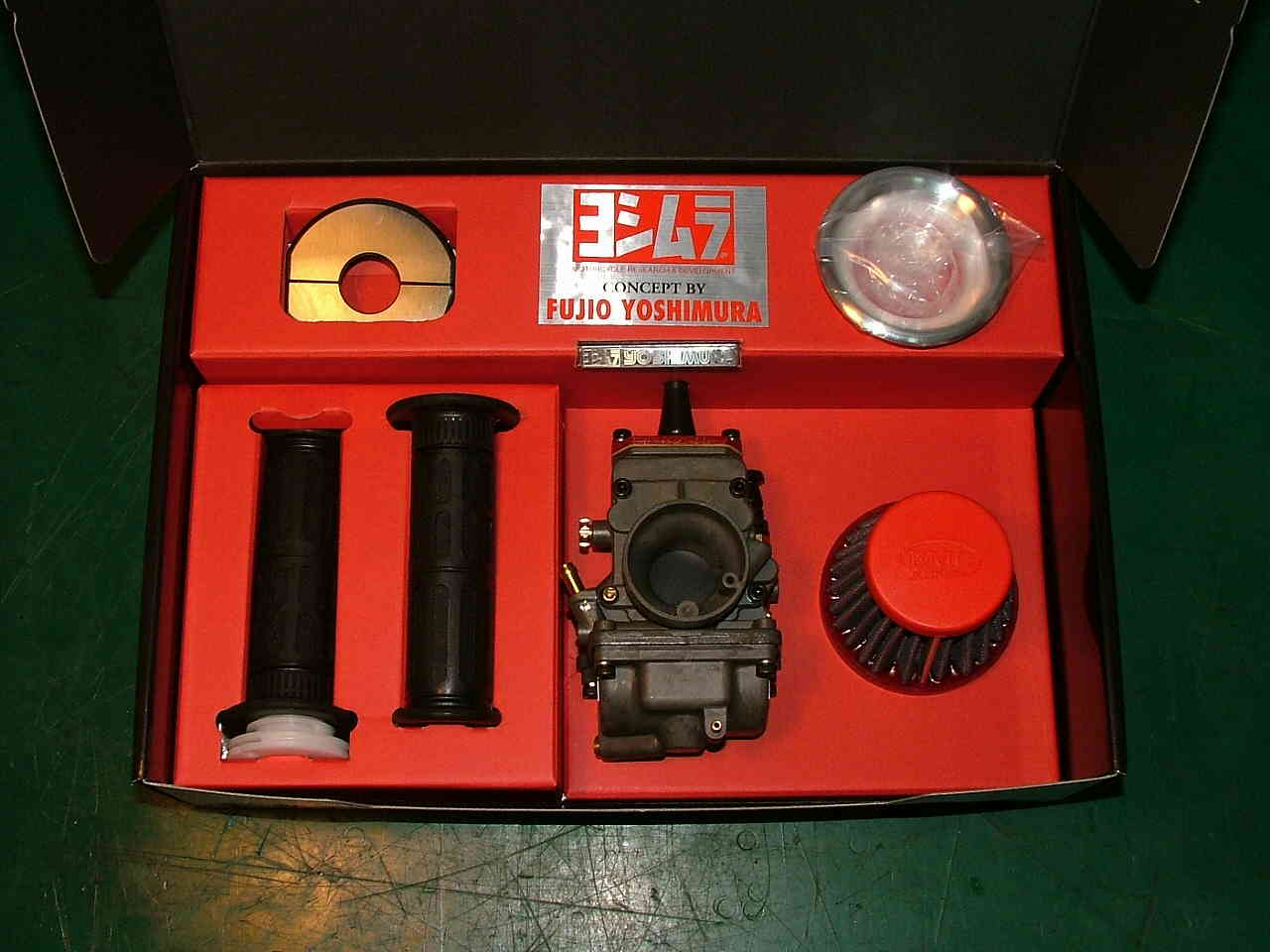 完成したエンジンに、 ヨシムラモンキー用パワーアップキット‘TM−MJN24キャブレター’の代り付けです。 |