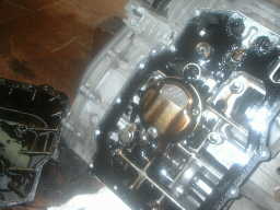 4サイクル4気筒エンジンの様に上下に分割するクランクケースは、カウンタシャフト(メインシャフト)の保持ベアリングの部分にリテーナーが付いています。そのリテーナーは上下分割も妨げる様になっていますので取外します。