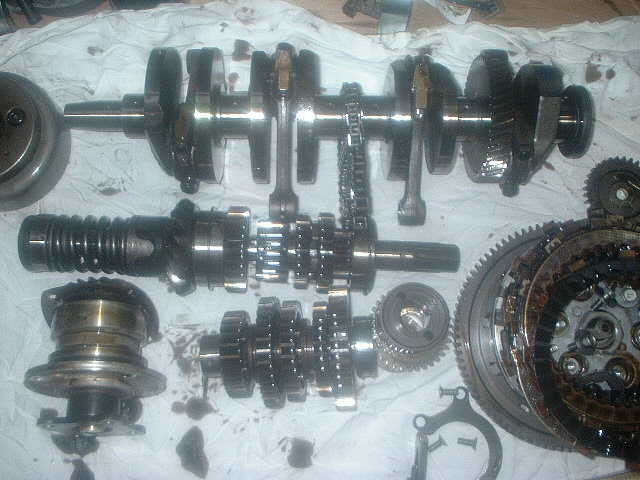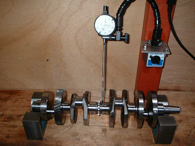 クランクシャフトの振れは、0,15mm以下でした。標準値:0〜0,03mm 限度:0,08mm。