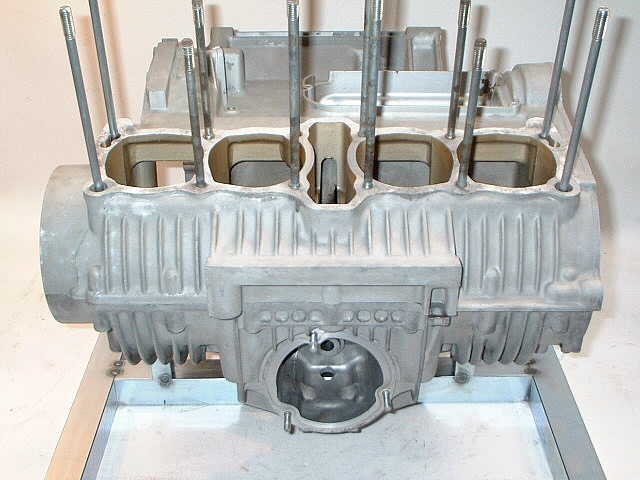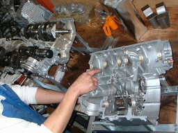 この小さな砂が、クランクケース内に紛れ込まないように、マスキング(防御防砂処理)を行ないます。特にオイル通路に入り込まないように注意が大変必要です。