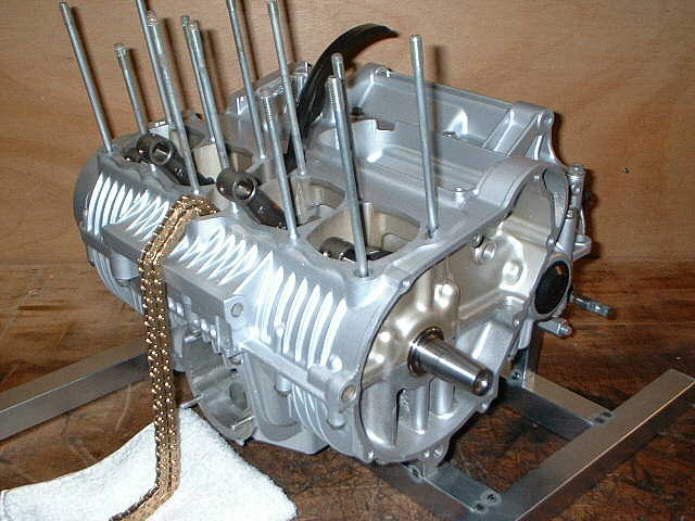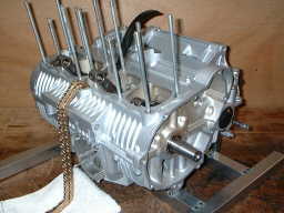 完成した、クランクケース。 GS650Gの心臓部分です。 やはり金色のカムチェーンは、いいですねぇ〜 美しさ&信頼性が非常に大きいです。