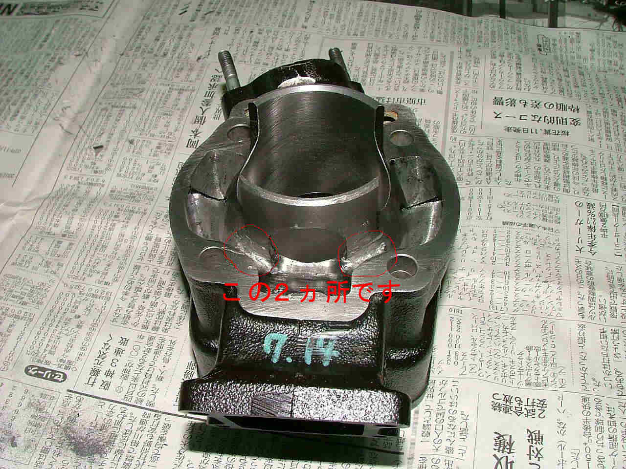 掃気ポートを新たに2ヵ所、5mm深さにて追加しています。画像拡大にて、ハッキリわかります。