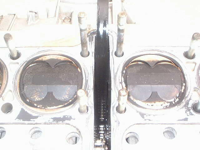 1日目は腰上(シリンダー部分=クランクケースより上)だけの作業で終了しました(平成15年3月5日) |