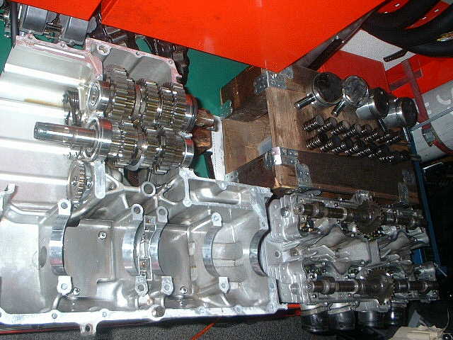 4気筒マルチエンジンはクランクケースが上下割りになっています。 コンプリート車よ、「さぁ今からリフレッシュしていきますので、元気なパワーを復活して下さい!」
