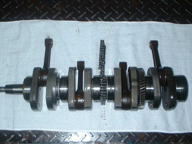 1100のクランクシャフトは、コンロッド大端がクランクピン圧入の為に、一般的には外しません。この部分が750と1100のエンジンの相違点です