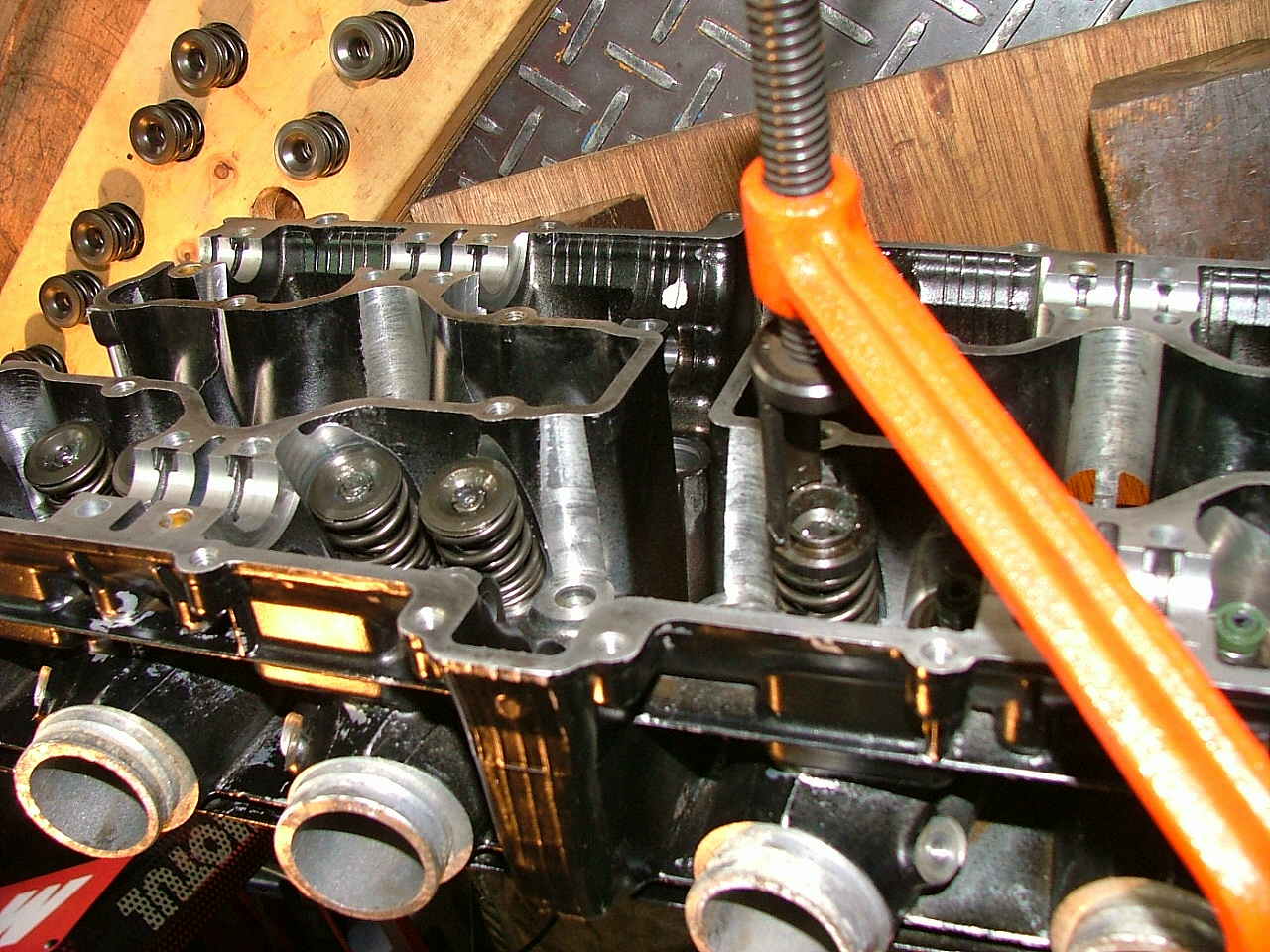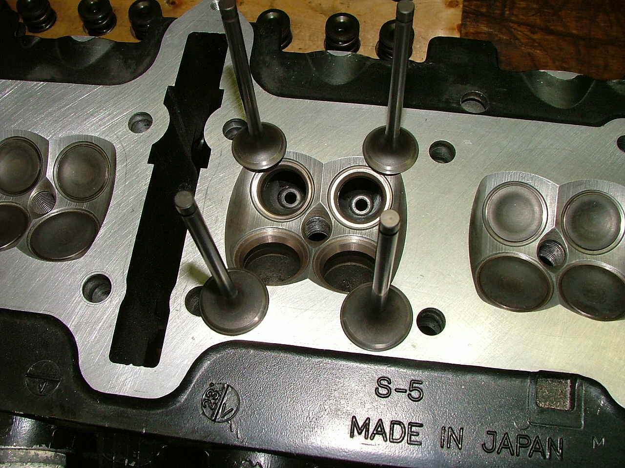 オーバーホール中の、シリンダーヘッドです。バルブはIN側&EX側共に交換&バルブシート当たり面研磨です。バルブガイドも全て交換です。