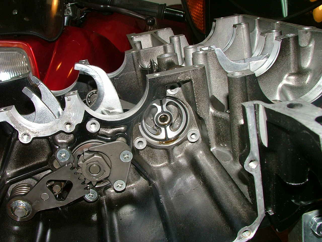 カムチェーンはアドバンテージレーシングカムチェーンを使用です。黒色エンジンの艶と金色チェーン、いい雰囲気を醸し出しています。