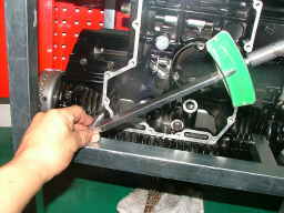 クランクケース上下を、規定トルクで締付けます。 8&9mmボルト:仮締め1,3kgf・m/本締め2,2kgf・m