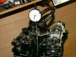 カムシャフトを組込み後に、再度バルブタイミングを調整で合わせていきます。タペットクリアランスは0,15です。ノーマルは0.07〜0.12なので、少し広めです。