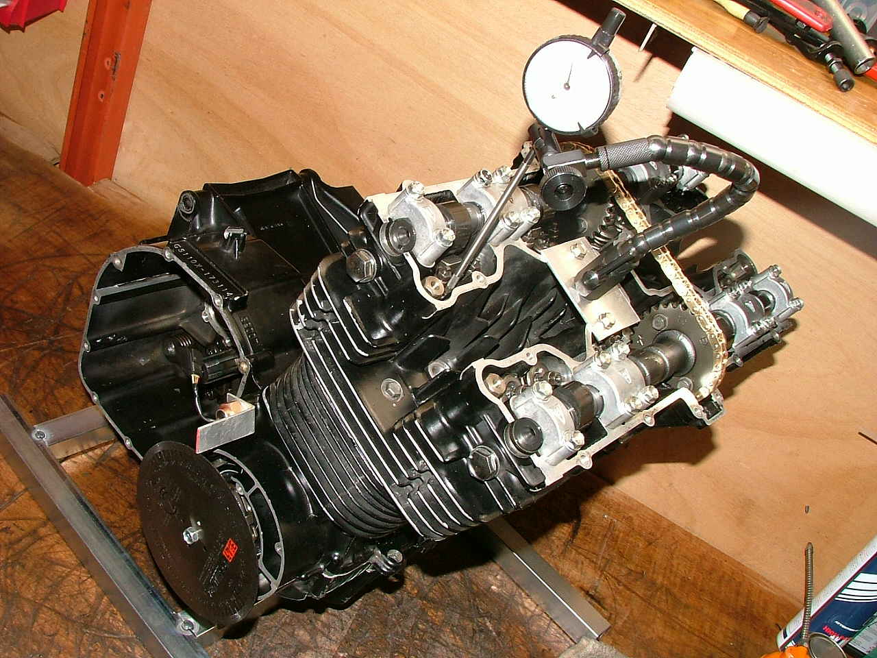 シリンダーヘッド組込み後に、カムシャフトの組込みです。 タイミングを合わせる為に、1番&4番ピストンを上死点にしておきます。