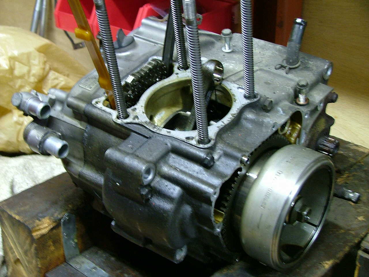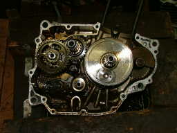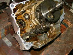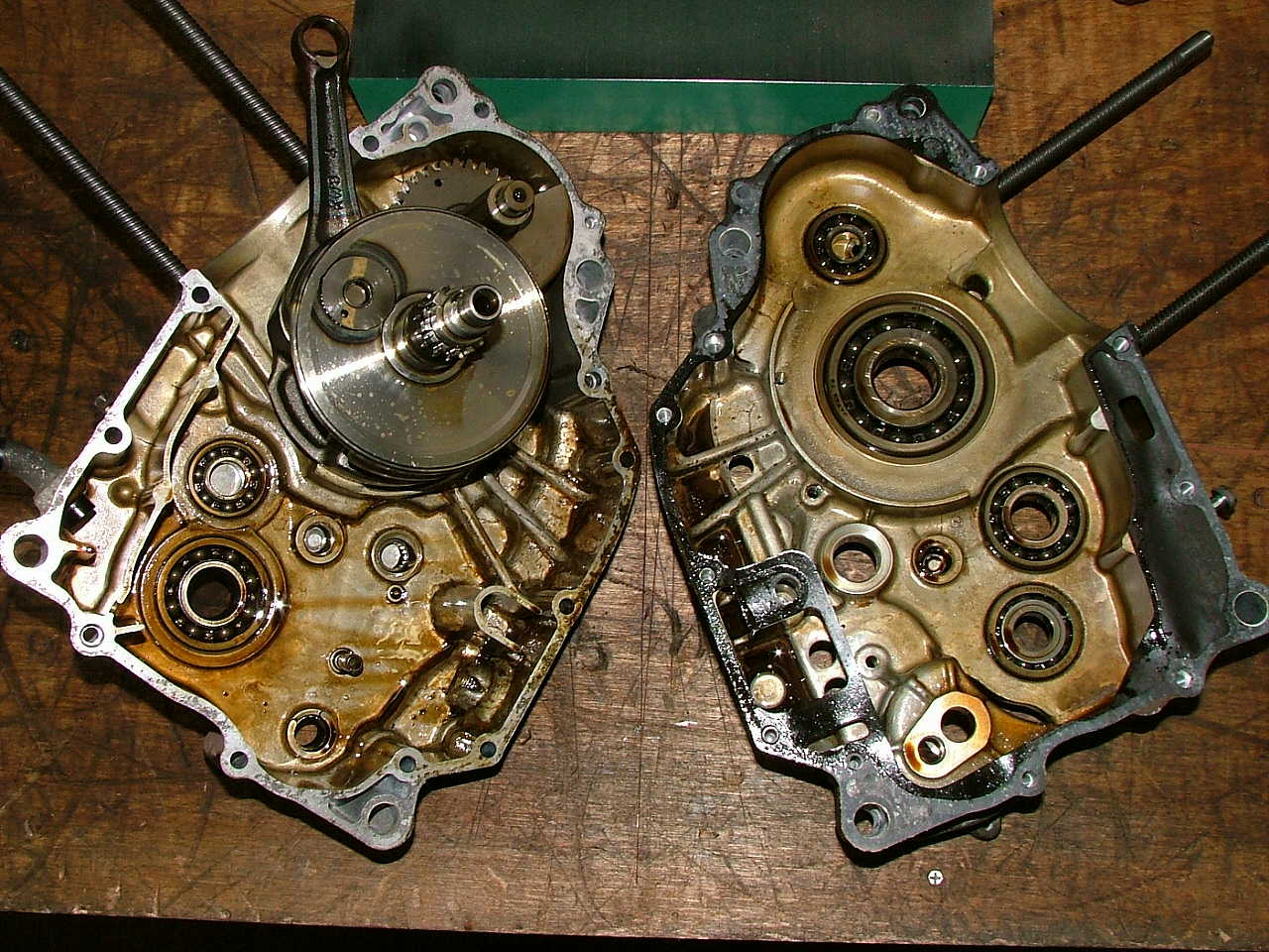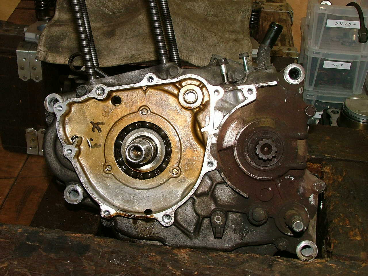 クランクシャフトは、左側ベアリングと共に、クランクケースに残ります。
