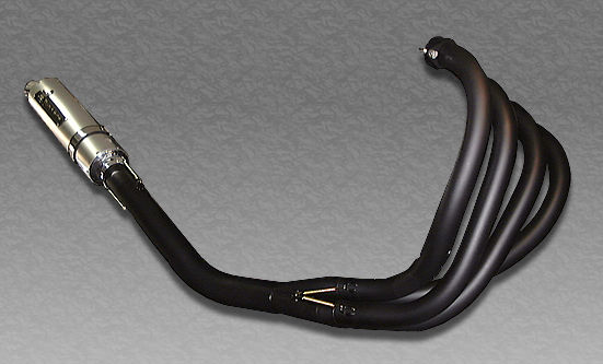 エキパイ φ38・1.2mm・スチール手曲げ 集合部:ピラミッドトライアングル採用4イン1 テールパイプ φ60.5・スチール集合部一体式 サイレンサー φ100x400mmアルミアウターφ50完全ストレート構造(バッフル付属97db) アップステー付属・ノーマルステップ要加工 アップタイプ・オイルドレン脱着可・タンデム不可・ノーマルウインカー使用可 手曲げ独自のアールラインを形成するエキパイは、見る者を魅了し、乗る者たちに歓喜を呼び起こす。 完全4イン1集合部は、胸をすく加速感とはじけるようなサウンドを生み出す。 シンプルなφ100x400mmサイレンサーは絶妙なパワーフィールと空冷4発の重厚でそれでいて爆発的なサウンドを響き渡せ、官能的な高回転フィールを生み出す。