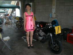 今日は翼もテンションが高いようで、寝ません・・・ ピットの中をハイハイしながら(1歳ですがまだ歩けません)カタナに寄ってはつかまり立ち。 将来はレーサーになるのだろうか?