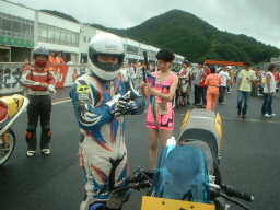 ライダーの坪根幸雄&雨は降っていませんが、なぜかキャンギャルでは無くバドギャルのアヒル。